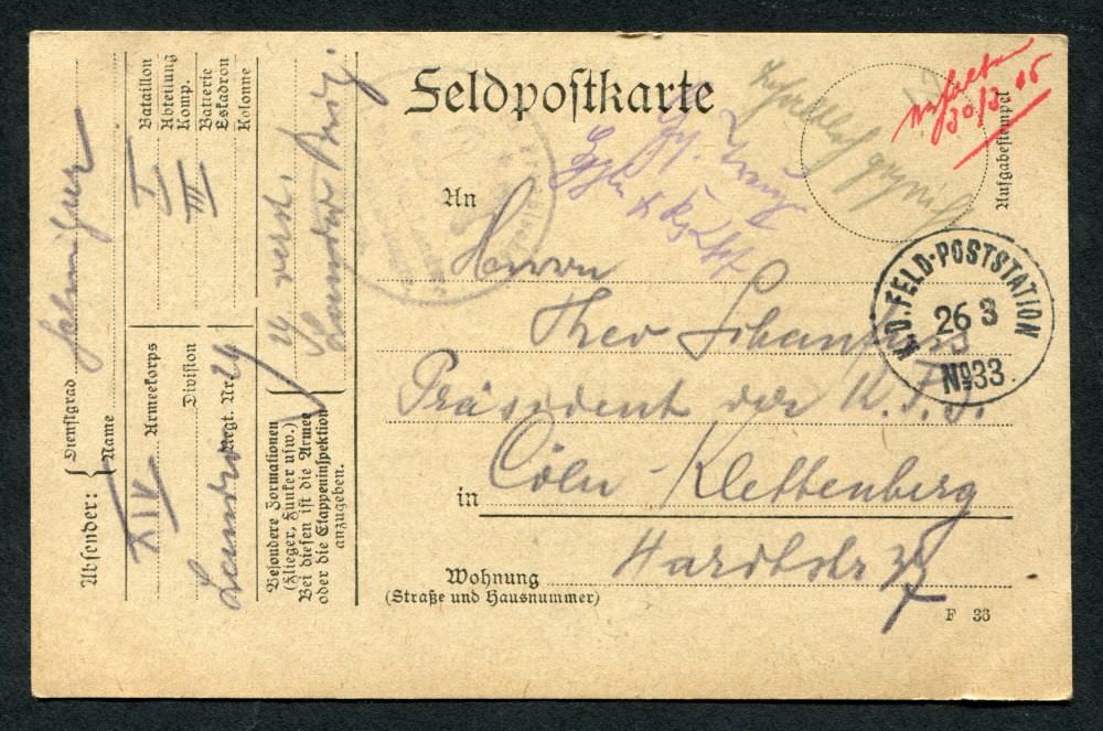 Ein Onlinearchiv mit Feldpostkarten und Liebesgaben aus dem ersten Weltkrieg des 20. Jahrhunderts. Unser Verein „Kölsche Funke rut-wieß vun 1823 e.V.“ oder kurz die „Roten Funken“ gedenken hier Mitgliedern, die den grausamen Krieg erleben mussten.