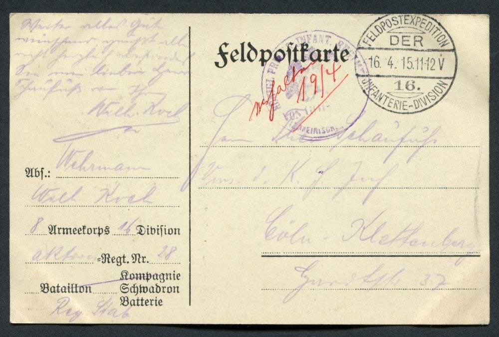 Ein Onlinearchiv mit Feldpostkarten und Liebesgaben aus dem ersten Weltkrieg des 20. Jahrhunderts. Unser Verein „Kölsche Funke rut-wieß vun 1823 e.V.“ oder kurz die „Roten Funken“ gedenken hier Mitgliedern, die den grausamen Krieg erleben mussten.
