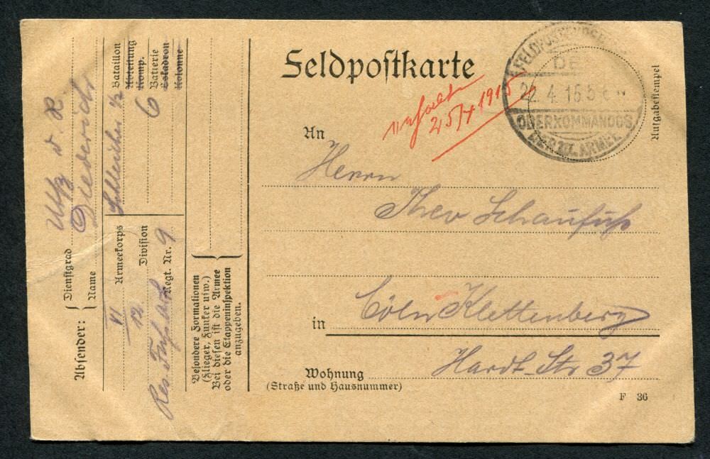 Ein Onlinearchiv mit Feldpostkarten und Liebesgaben aus dem ersten Weltkrieg des 20. Jahrhunderts. Unser Verein „Kölsche Funke rut-wieß vun 1823 e.V.“ oder kurz die „Roten Funken“ gedenken hier Mitgliedern, die den grausamen Krieg erleben mussten.