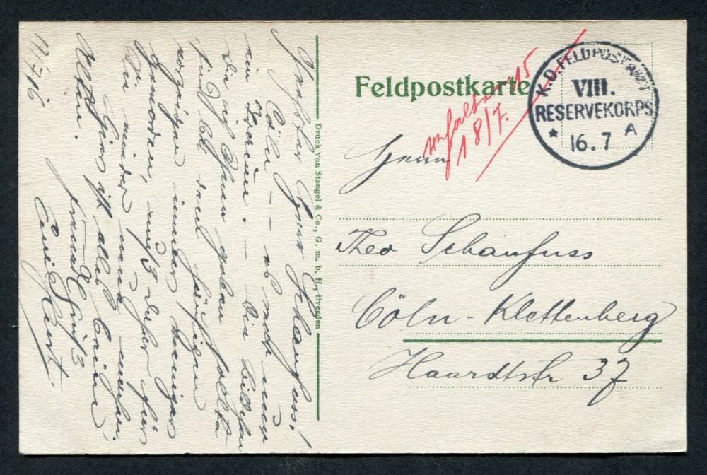 Ein Onlinearchiv mit Feldpostkarten und Liebesgaben aus dem ersten Weltkrieg des 20. Jahrhunderts. Unser Verein „Kölsche Funke rut-wieß vun 1823 e.V.“ oder kurz die „Roten Funken“ gedenken hier Mitgliedern, die den grausamen Krieg erleben mussten.