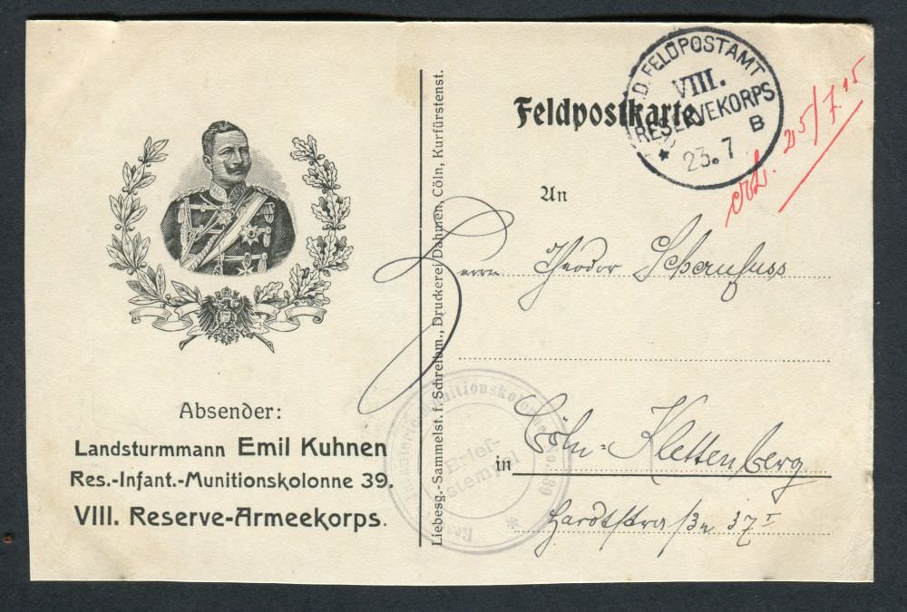 Ein Onlinearchiv mit Feldpostkarten und Liebesgaben aus dem ersten Weltkrieg des 20. Jahrhunderts. Unser Verein „Kölsche Funke rut-wieß vun 1823 e.V.“ oder kurz die „Roten Funken“ gedenken hier Mitgliedern, die den grausamen Krieg erleben mussten.