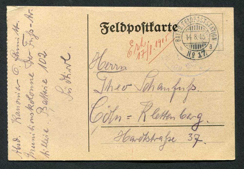 Ein Onlinearchiv mit Feldpostkarten und Liebesgaben aus dem ersten Weltkrieg des 20. Jahrhunderts. Unser Verein „Kölsche Funke rut-wieß vun 1823 e.V.“ oder kurz die „Roten Funken“ gedenken hier Mitgliedern, die den grausamen Krieg erleben mussten.