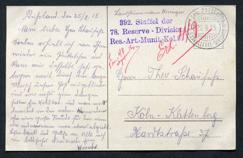 Ein Onlinearchiv mit Feldpostkarten und Liebesgaben aus dem ersten Weltkrieg des 20. Jahrhunderts. Unser Verein „Kölsche Funke rut-wieß vun 1823 e.V.“ oder kurz die „Roten Funken“ gedenken hier Mitgliedern, die den grausamen Krieg erleben mussten.