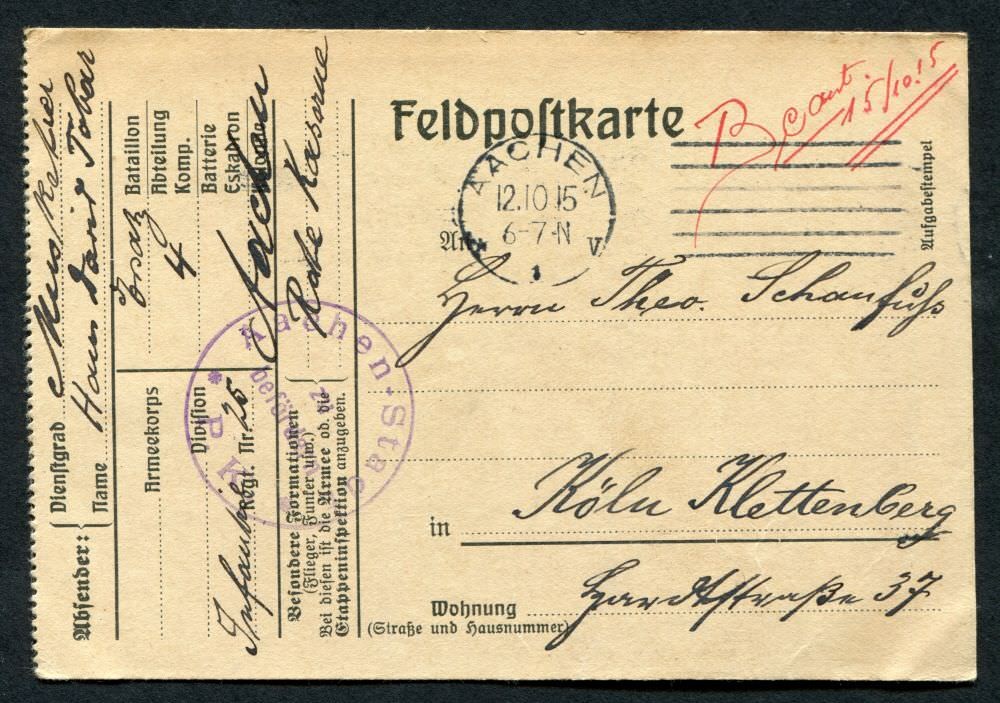 Ein Onlinearchiv mit Feldpostkarten und Liebesgaben aus dem ersten Weltkrieg des 20. Jahrhunderts. Unser Verein „Kölsche Funke rut-wieß vun 1823 e.V.“ oder kurz die „Roten Funken“ gedenken hier Mitgliedern, die den grausamen Krieg erleben mussten.