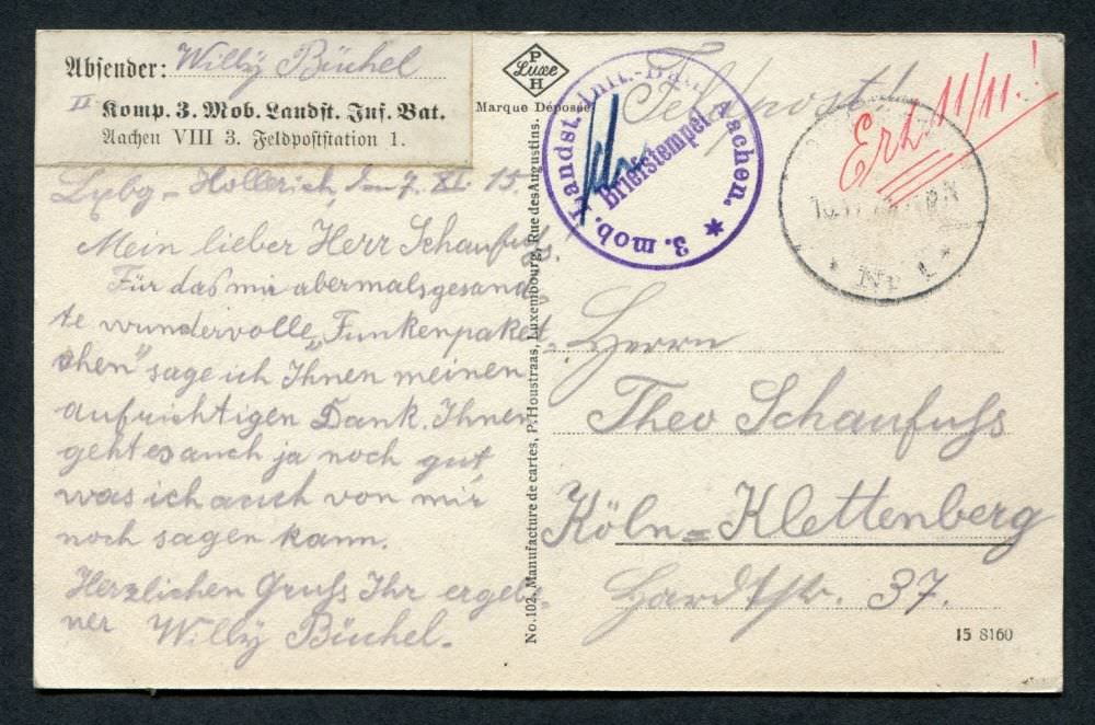 Ein Onlinearchiv mit Feldpostkarten und Liebesgaben aus dem ersten Weltkrieg des 20. Jahrhunderts. Unser Verein „Kölsche Funke rut-wieß vun 1823 e.V.“ oder kurz die „Roten Funken“ gedenken hier Mitgliedern, die den grausamen Krieg erleben mussten.