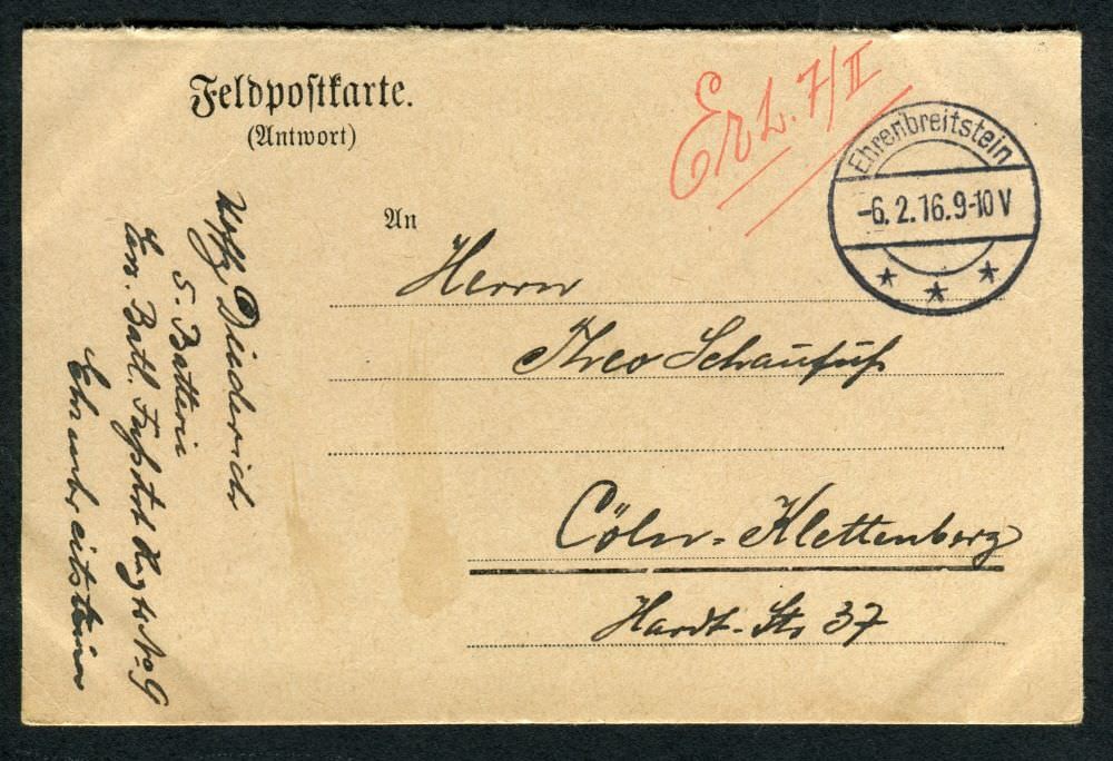 Ein Onlinearchiv mit Feldpostkarten und Liebesgaben aus dem ersten Weltkrieg des 20. Jahrhunderts. Unser Verein „Kölsche Funke rut-wieß vun 1823 e.V.“ oder kurz die „Roten Funken“ gedenken hier Mitgliedern, die den grausamen Krieg erleben mussten.
