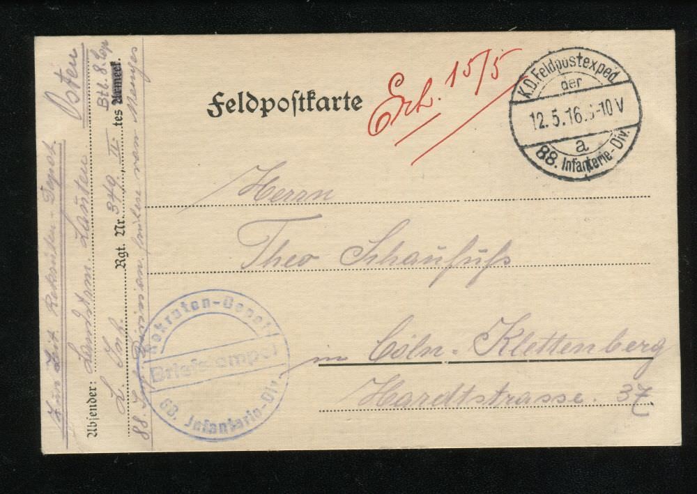 Ein Onlinearchiv mit Feldpostkarten und Liebesgaben aus dem ersten Weltkrieg des 20. Jahrhunderts. Unser Verein „Kölsche Funke rut-wieß vun 1823 e.V.“ oder kurz die „Roten Funken“ gedenken hier Mitgliedern, die den grausamen Krieg erleben mussten.