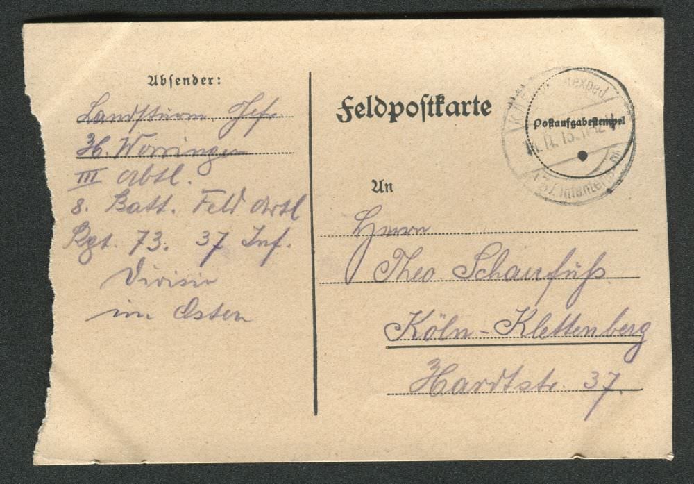 Ein Onlinearchiv mit Feldpostkarten und Liebesgaben aus dem ersten Weltkrieg des 20. Jahrhunderts. Unser Verein „Kölsche Funke rut-wieß vun 1823 e.V.“ oder kurz die „Roten Funken“ gedenken hier Mitgliedern, die den grausamen Krieg erleben mussten.
