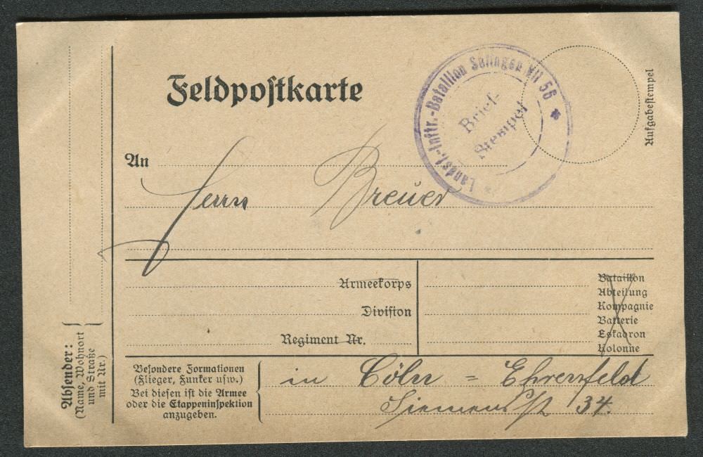 Ein Onlinearchiv mit Feldpostkarten und Liebesgaben aus dem ersten Weltkrieg des 20. Jahrhunderts. Unser Verein „Kölsche Funke rut-wieß vun 1823 e.V.“ oder kurz die „Roten Funken“ gedenken hier Mitgliedern, die den grausamen Krieg erleben mussten.