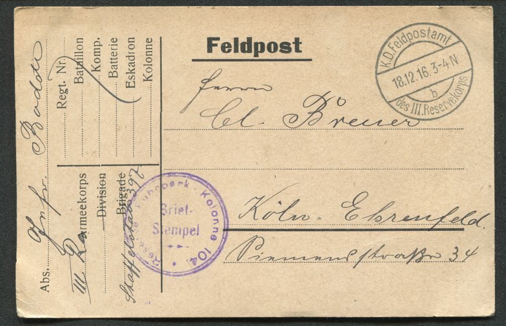 Ein Onlinearchiv mit Feldpostkarten und Liebesgaben aus dem ersten Weltkrieg des 20. Jahrhunderts. Unser Verein „Kölsche Funke rut-wieß vun 1823 e.V.“ oder kurz die „Roten Funken“ gedenken hier Mitgliedern, die den grausamen Krieg erleben mussten.