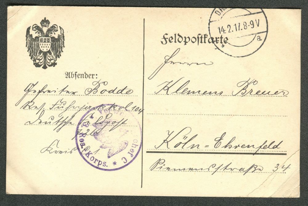Ein Onlinearchiv mit Feldpostkarten und Liebesgaben aus dem ersten Weltkrieg des 20. Jahrhunderts. Unser Verein „Kölsche Funke rut-wieß vun 1823 e.V.“ oder kurz die „Roten Funken“ gedenken hier Mitgliedern, die den grausamen Krieg erleben mussten.