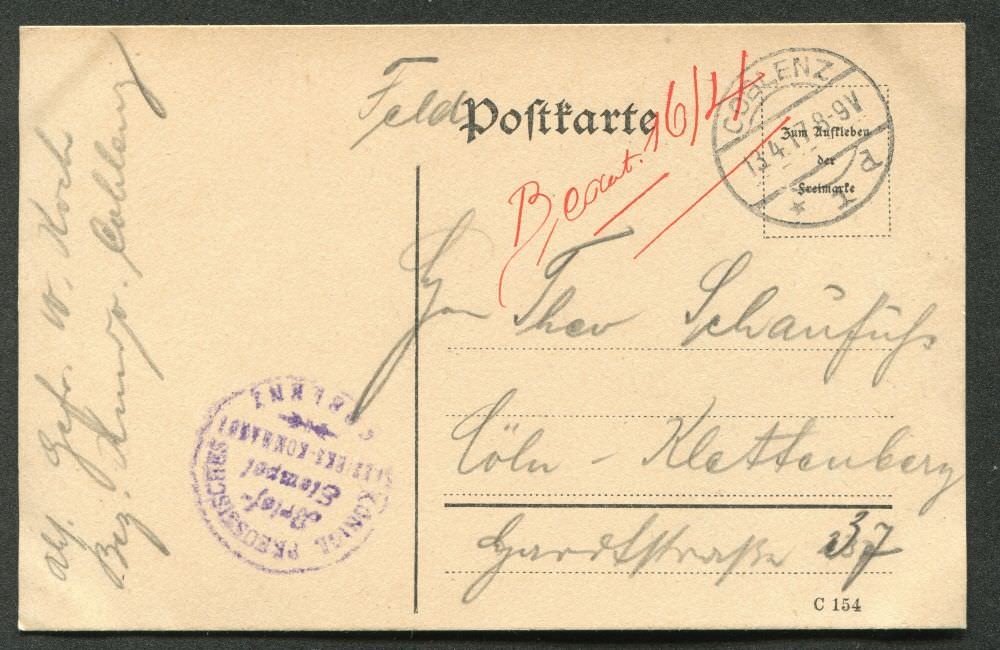 Ein Onlinearchiv mit Feldpostkarten und Liebesgaben aus dem ersten Weltkrieg des 20. Jahrhunderts. Unser Verein „Kölsche Funke rut-wieß vun 1823 e.V.“ oder kurz die „Roten Funken“ gedenken hier Mitgliedern, die den grausamen Krieg erleben mussten.