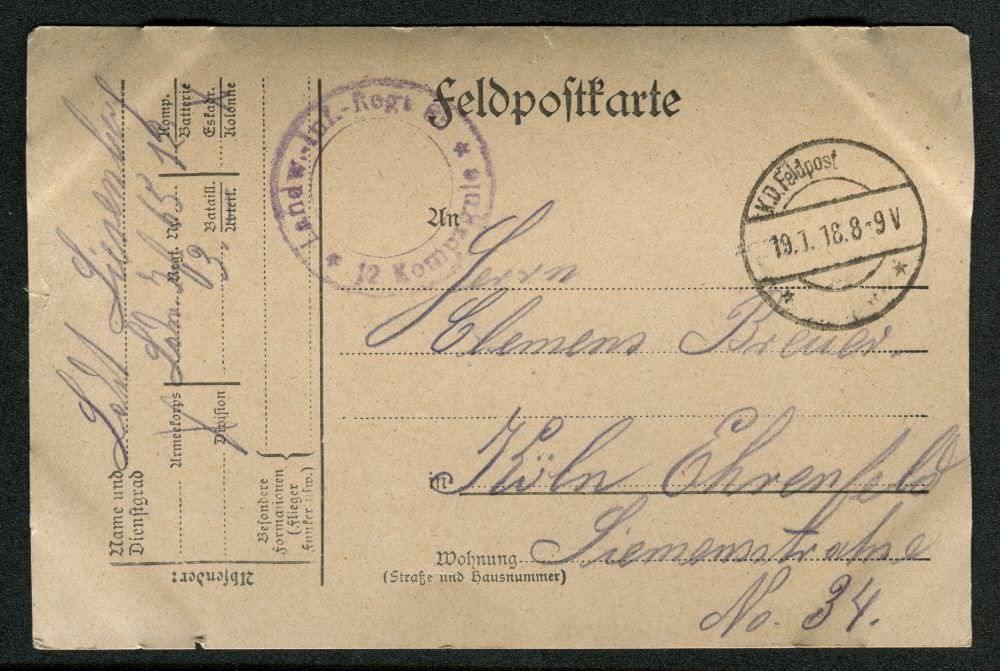 Ein Onlinearchiv mit Feldpostkarten und Liebesgaben aus dem ersten Weltkrieg des 20. Jahrhunderts. Unser Verein „Kölsche Funke rut-wieß vun 1823 e.V.“ oder kurz die „Roten Funken“ gedenken hier Mitgliedern, die den grausamen Krieg erleben mussten.