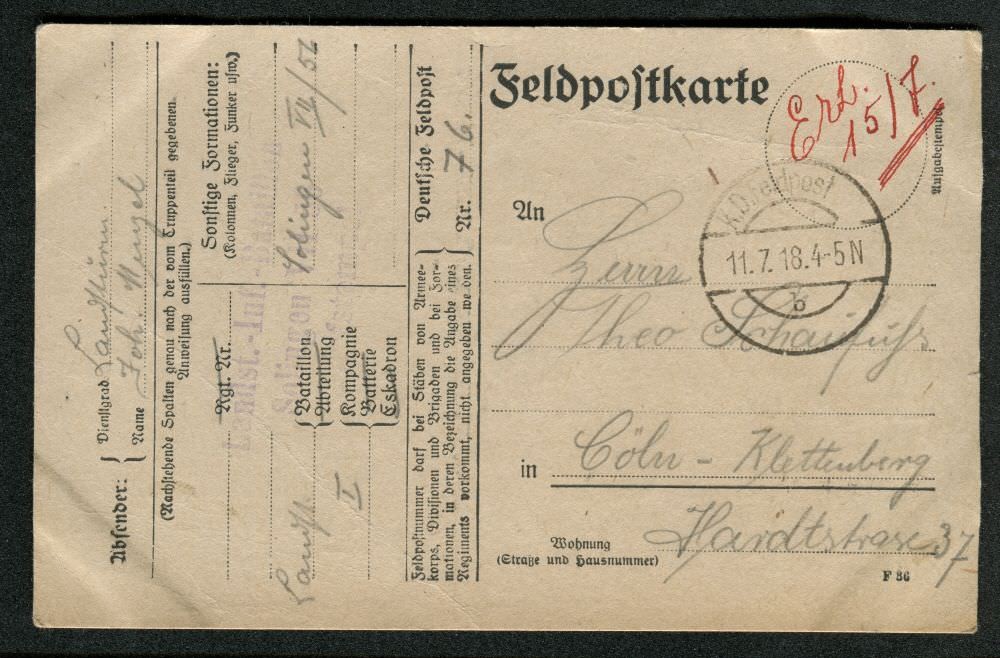 Ein Onlinearchiv mit Feldpostkarten und Liebesgaben aus dem ersten Weltkrieg des 20. Jahrhunderts. Unser Verein „Kölsche Funke rut-wieß vun 1823 e.V.“ oder kurz die „Roten Funken“ gedenken hier Mitgliedern, die den grausamen Krieg erleben mussten.