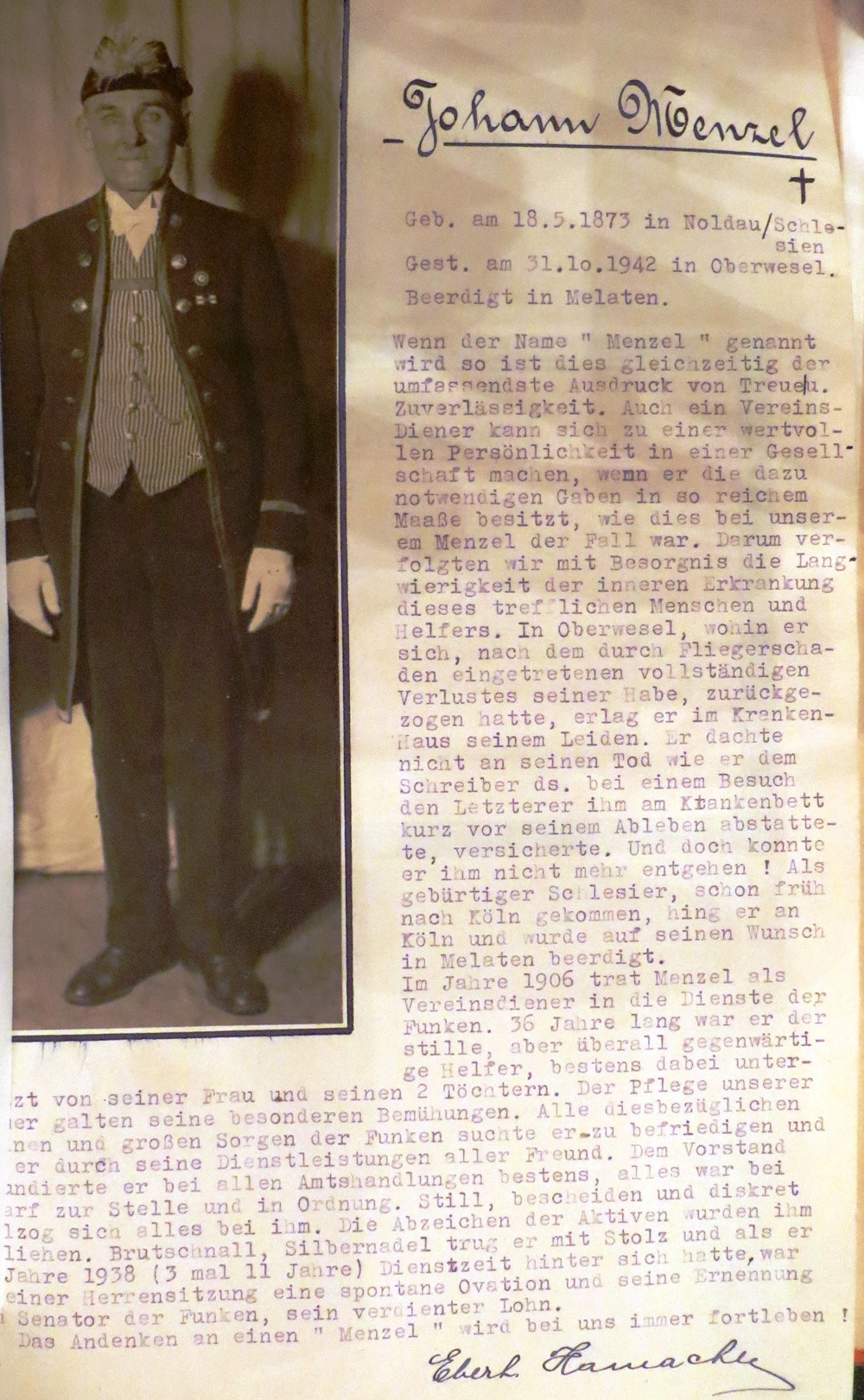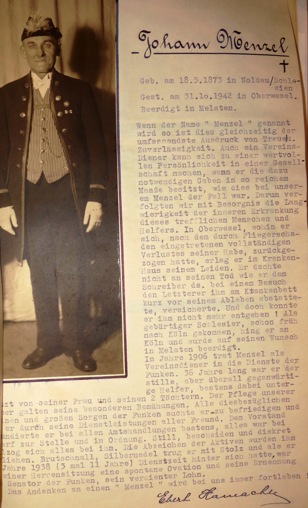 (2) Rechnungsheft der Roten Funken, Im Felde u, in Garnisonen stehende Mitglieder, (3) RF-Chronik, Bd. 6, Zum Tode von Johann Menzel
