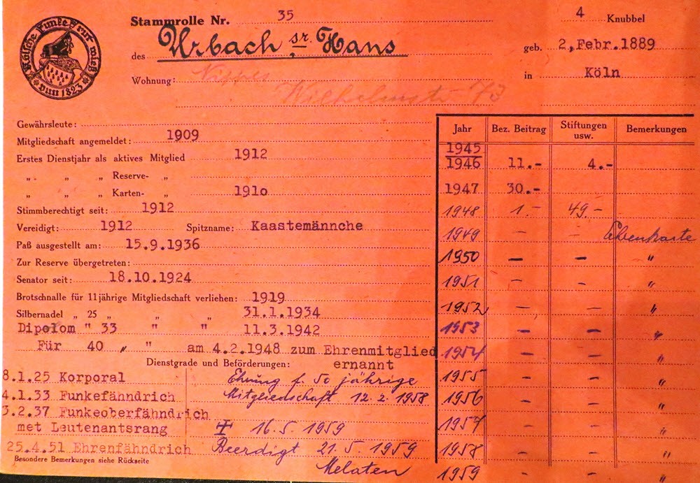 (1) RF-Stammrollen, (2) Adressbuch Köln, (3) Archiv RF, Akte 126, Den Toten zum Gedenken