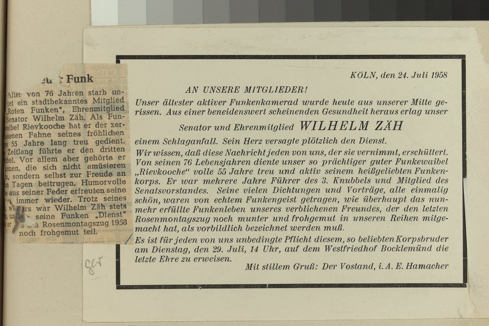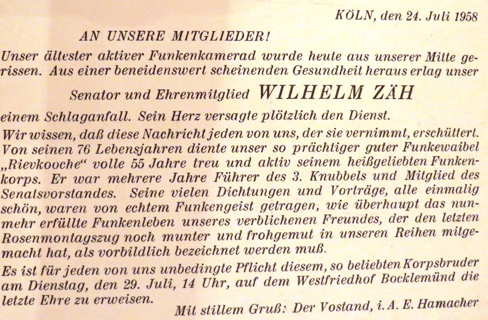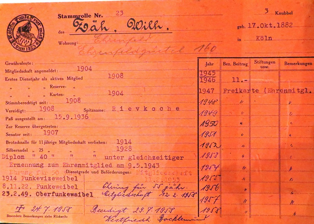 (1) RF-Stammrollen, (2) Adressbuch Köln, (3) Archiv RF, Akte 126, Unseren Toten zum Gedenken
