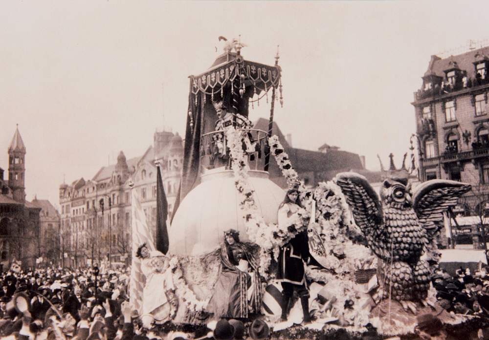 Fotografie, Köln, Rosenmontag 1914 (KSM)Bei genauerer Betrachtung wird deutlich, dass die Karnevalisten die „Werkbundausstellung=Welt-Ausstellung“ 8 nur zum Anlass nahmen, um dem Zug ein übergreifendes Thema zu geben. Die Werkbund-Ausstellung selbst taucht im Zugprogramm namentlich nicht als eigener Motivwagen auf. Die Kölner machten daraus ihre eigene Geschichte.