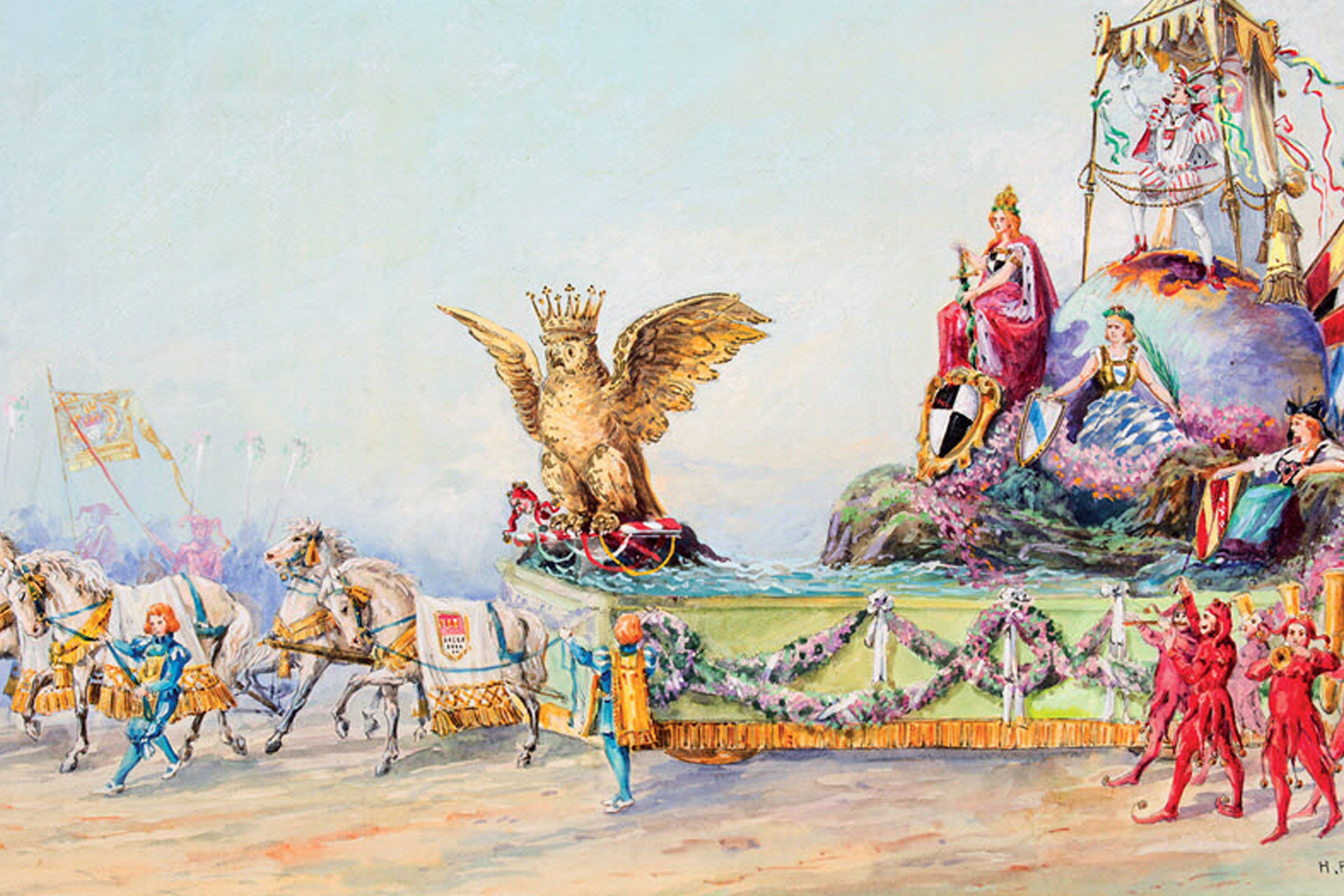 Fritz Steiger, Entwurf für das Titelblatt des Rosenmontagszug-Albums „Kölner Weltausstellung“, vermutlich Gouache, 1914 (KSM)