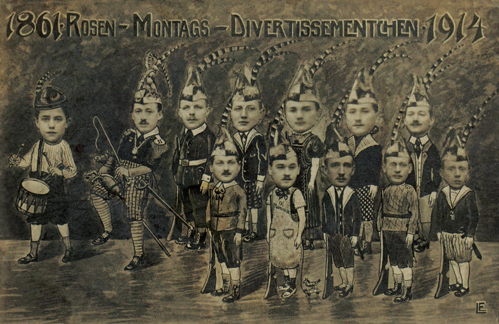 Montage für eine Publikation der Gesellschaft Rosen-Montags-Divertissementchen,Postkarte, Köln, 1914 (KSM)
