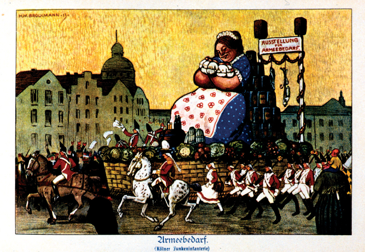 Dennoch, mit einem Mal wurde – so kann man wohl durchaus ohne Häme feststellen – zum bitteren Ernst, was bis dahin Spiel gewesen war: die Persiflage auf das Soldatentum und militärisches Gehabe, ja die ganze den Funken nachgesagte Laisser-faire- Haltung zu kriegerischen Auseinandersetzungen, wie sie in dem erfundenen Ruf der Kölner Stadtsoldaten zum Feind „Wellt ehr wal dat Scheeßen obhöre! Seht ehr dann nit, dat he Lück stonn!“8 gipfelte. Die den Kölnern nachgesagte lockere Lebenseinstellung („Et hät noch immer jot jegange“) musste in diesen Kriegsjahren der Erkenntnis weichen, dass vieles eben nicht „gut ging“. Dabei war doch eigentlich der Bevölkerung schon lange klar, dass ein Krieg vor der Tür stand. Vorbereitet waren die Funken – wie die gesamte Nation – durch eine zunehmende Militarisierung der deutschen Gesellschaft.