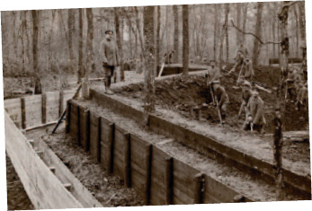 37 Dies war jedoch noch eine verhältnismäßig gelinde Anstrengung verglichen mit der, die Soldaten in den Schützengräben auf sich nehmen mussten. Manch einer berichtete von Tag und Nacht im Graben und hohen, unmittelbar erlebten Verlusten an Menschenleben. 38 Dietrich Osthus schrieb im Oktober 1915 aus Chermizy über seine gefährlichen Pioniereinsätze vor den Schützengräben, wo er „spanische Reiter“ aufbaute. „Sobald der Franzmann uns hört oder sieht, bestreicht er das Gelände mit seinen Flachfeuergeschützen.“ 39 Bis zu den Knien saßen die Soldaten bei Regen im Schlamm der Gräben – da wärmten die „gestrickten Funkengamaschen“, die ein Funkensoldat von seiner Mutter zugesandt bekam. 40 Sechs Tage Dienst im Graben, dann drei Tage Ruhepause, in denen aber auch gearbeitet wurde – so sah die bittere Realität der Soldaten aus.